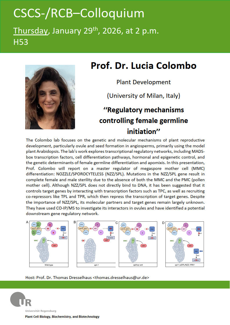 Host: Prof. Dr. Thomas Dresselhaus, Cell Biology and Plant Biochemistry