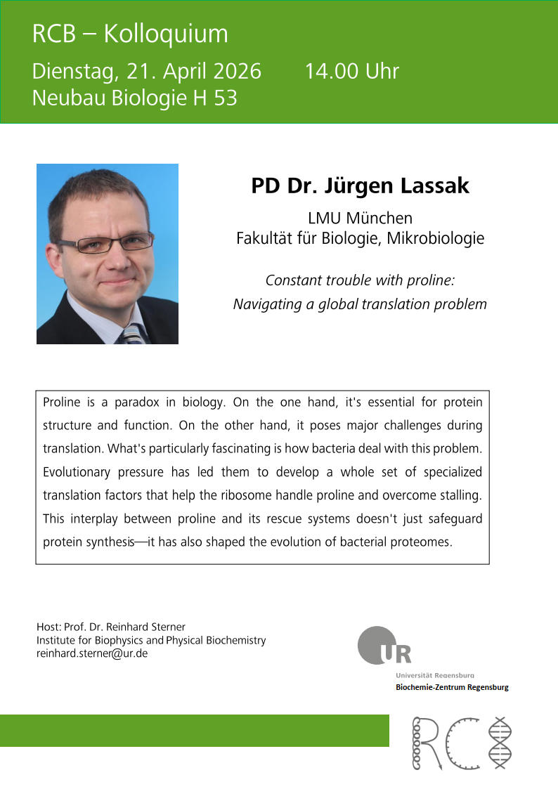 RCB-Colloquium: PD Dr. Jürgen Lassak (LMU München)