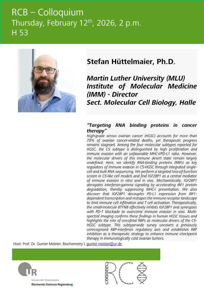 RCB-Colloquium: Stefan Hüttelmaier, Ph.D. (Martin Luther University (MLU) Institute of Molecular Medicine (IMM))
