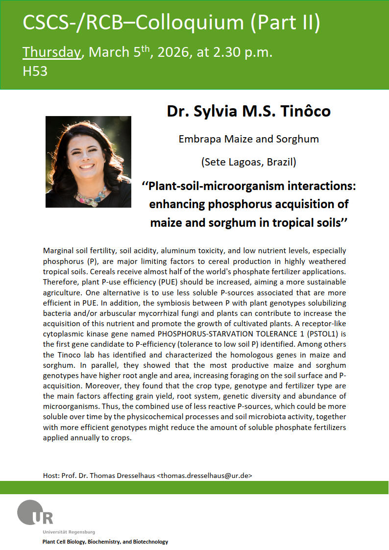 Host: Prof. Dr. Thomas Dresselhaus, Cell Biology and Plant Biochemistry
