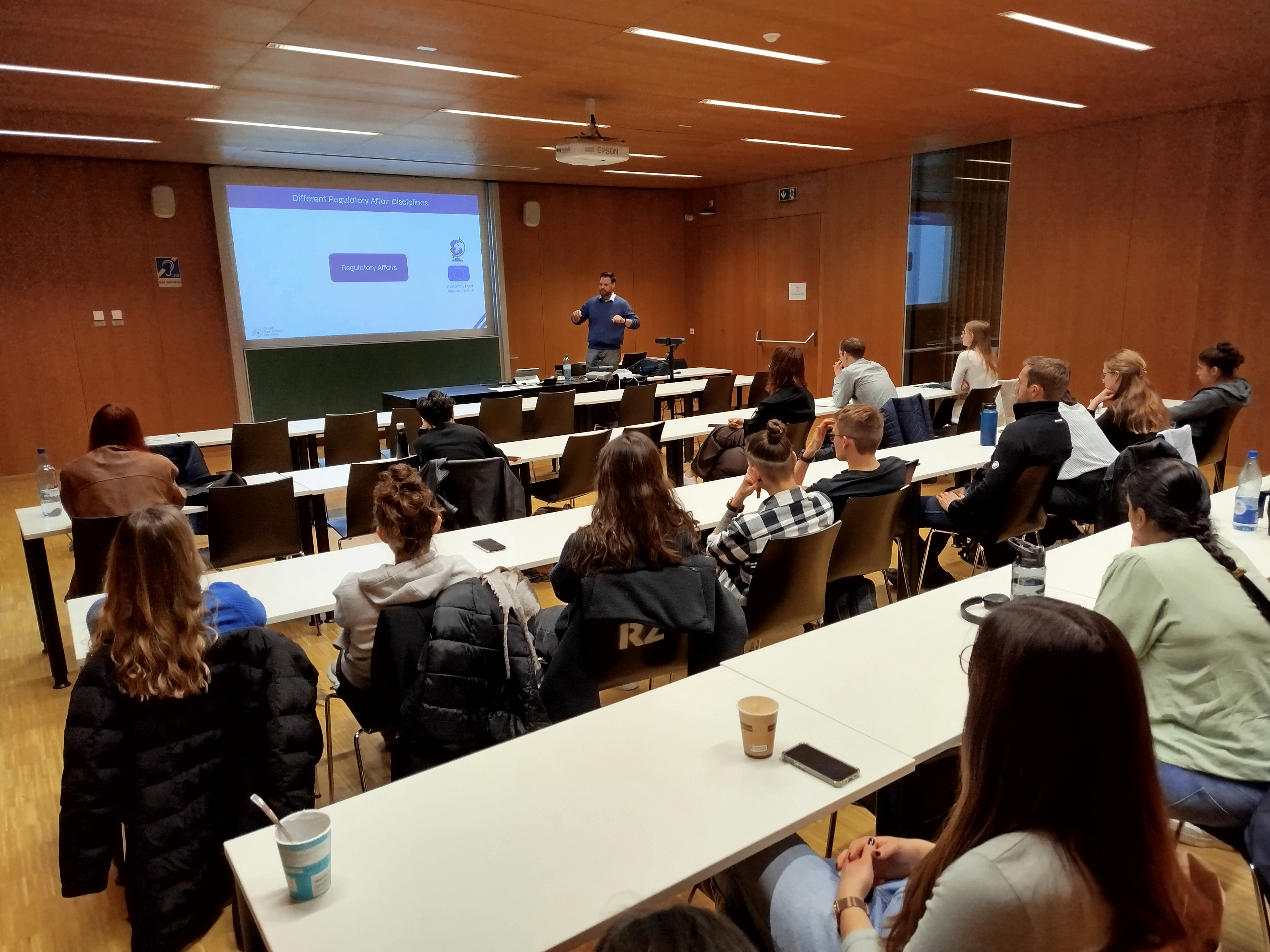 His talk was particularly engaging because he clearly illustrated the many facets of regulatory affairs: from scientific research and legal frameworks to manufacturing and patient access. In addition, he provided participants with valuable advice on entering the (pharmaceutical) industry.