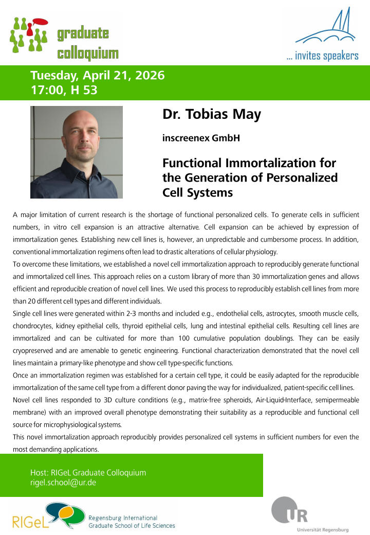 RIGeL Graduate Colloquium: Dr. Tobias May (inscreenex GmbH)