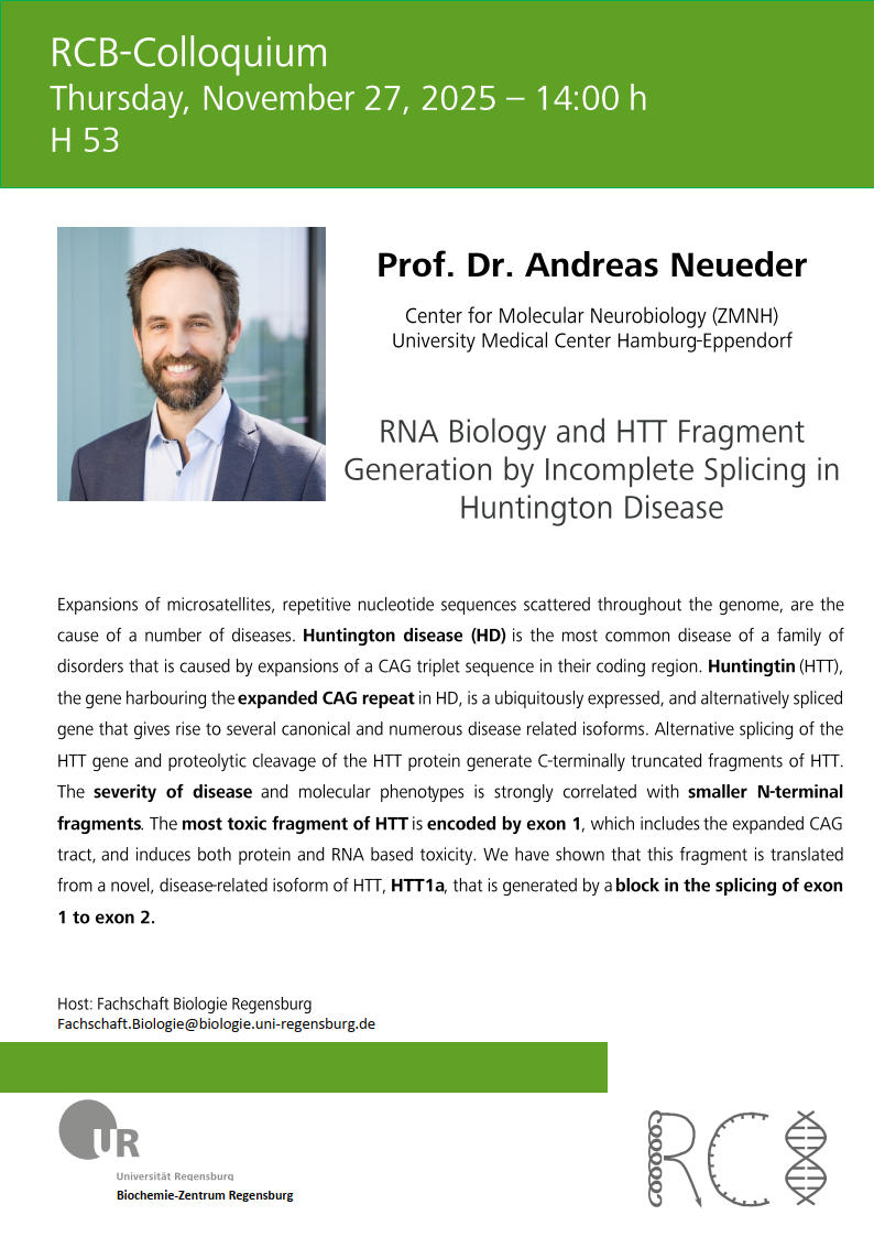 RCB-Colloquium: Prof. Dr. Andreas Neueder (University Medical Center Hamburg-Eppendorf)