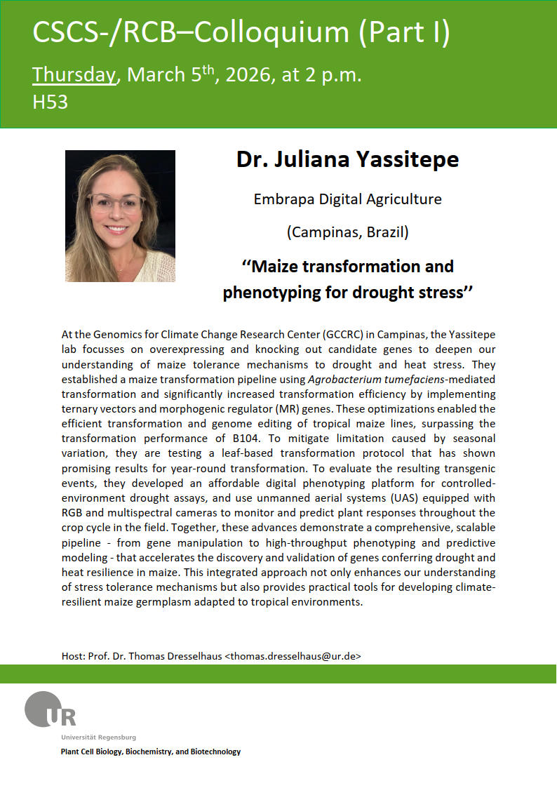 Host: Prof. Dr. Thomas Dresselhaus, Cell Biology and Plant Biochemistry